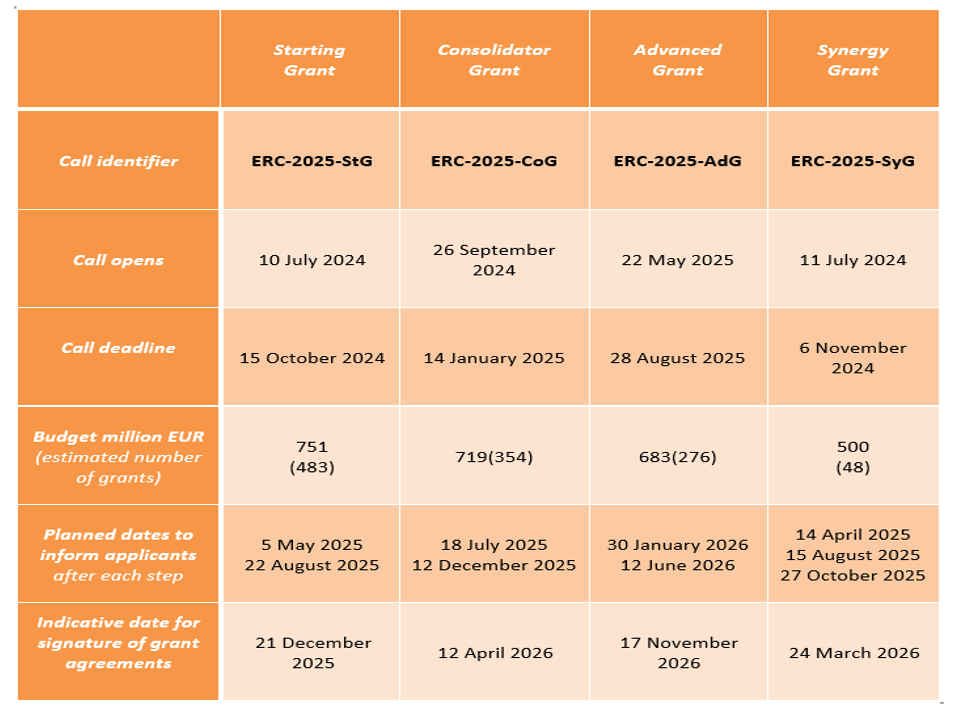 Finally, over the summer, the European Research Council approved, adopted and published its 2025 Work Programme, which lays out the upcoming funding opportunities, call budgets, and grant competition calendar; the Programme's first major milestone was the opening of the Starting Grant Call in early July.